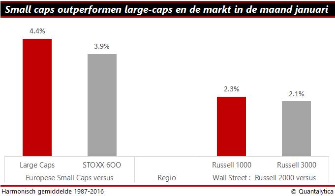 Met het jaareinde in zicht, rijst de vraag of aandelenbeleggers in de maand januari op de Amerikaanse en Europese beurzen opnieuw fraaie rendementen kunnen rapen. Hoewel smallcaps (worden vaak door kleinere beleggers gekocht) nog altijd gevoelig zijn voor het januari-effect, raden wij u in het licht van de Trump-rally niet aan om er volgend jaar hoog op in te zetten.