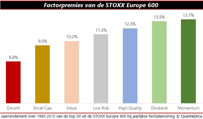 Welnu, welke aandelen liggen dit jaar bij beleggers in de gunst? Net als vorig jaar hebben marktpartijen een voorkeur voor momentumaandelen; in 2015 ging het dan om ‘low-vol’. Stijlfactoren kunt u echter ook naar believen combineren. Hoewel professionele fondsbeheerders de macro-economische ontwikkelingen nauwlettend in het oog houden, leert de praktijk van vermogensbeheer dat de combinatie van bedrijfsgrootte, momentum en waarde een gebalanceerde mix van beleggingsstijlen is die door de jaren heen mooie rendementen oplevert.