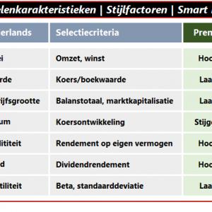 In essentie worden de koersen van aandelen gestuwd door het winstvermogen van het bedrijfsleven, maar de praktijk van vermogensbeheer leert dat vooral bedrijfsgrootte, momentum en waardering de aanjagers van het rendement zijn. Naast deze drie factoren kunt u aandelen ook indelen op dividend, kwaliteit en volatiliteit. Stijlfactoren kunt u naar believen combineren, maar factorpremies zijn geen optelsom van losse ideeën. Het gaat erom dat ze complementair zijn. Als de aandelenkarakteristieken elkaar niet aanvullen, dan is de kans groot dat u factorpremies nodeloos dubbel telt: aandelen die te boek staan als dividendaandeel zijn vaak ook goedkoop en laagvolatiel.
