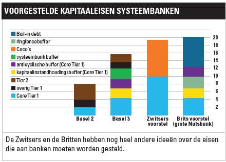 Instellingen die gekwalificeerd worden als ’too big to fail’ moeten ook nog een extra kapitaalbuffer aanhouden van 1 tot 2,5%, afhankelijk van de risicogewogen omvang van hun activa