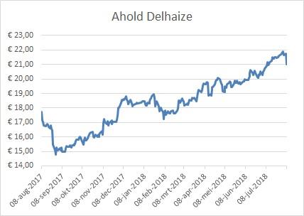 Het aandeel Ahold levert vandaag ruim 3% in na cijfers over het tweede kwartaal. Toch doet het aandeel het nog steeds prima; vorige week werd nog een hoogste jaarkoers van €22,08 bereikt en bij de huidige koers van €20,32 staat Ahold nog steeds ruim boven het dieptepunt van €14,72 van vorig jaar augustus.