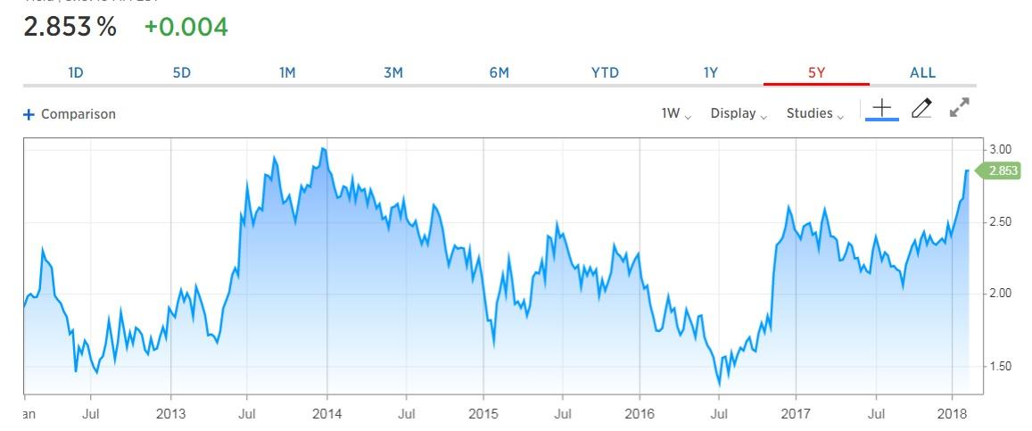 De heersende mening is dat de koersdalingen op de beurzen worden veroorzaakt door de sterk opgelopen Amerikaanse rente. Die is inderdaad sinds begin dit jaar snel opgelopen. Maar eind 2013-begin 2014 stond de rente rond hetzelfde niveau als nu. Zo bezien valt het dus wel mee met die hoge rente. Waarschijnlijk is het zoals zo vaak een combinatie van factoren. Niet alleen de rente, maar onder meer ook de hoge waardering zal een rol spelen.