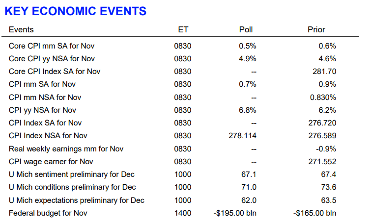 De Dow Jones (0,0%) sloot gisteren de beursdag neutraal af. Zowel de Nasdaq (-1,7%) als de S&P500 (-0,7%) lieten een verlies zien. Na drie dagen van winsten lieten beleggers zich van hun voorzichtige kant zien. Vandaag komen onder andere voorbeurs de US CPI inflatierapporten uit. Hier wordt met spanning naar uitgekeken. Analisten gaan uit van een inflatie van 6,7% op jaarbasis in november en een kerninflatie van 4,9%. Een maand eerder stegen de Amerikaanse consumentenprijzen met 6,2 % en liep de kerninflatie op tot 4,6%.