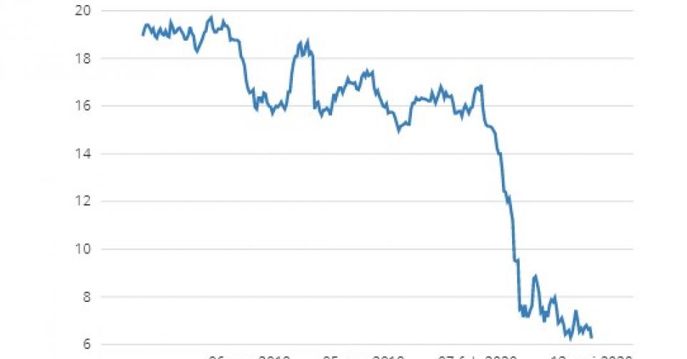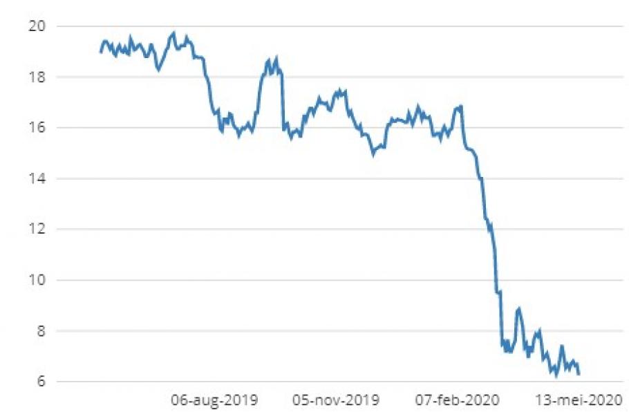 De ellende houdt niet op voor beleggers in het aandeel ABN Amro. Vandaag bereikt de koers een nieuw dieptepunt op €6,10 en is het verlies in 2020 inmiddels opgelopen tot maar liefst -62%. Daarmee is de beurswaarde van de bank nog slechts €3,1 mrd. Beleggers waren al veel eerder gewaarschuwd, want ABN verlaagde het dividend vorig jaar zomer voor een eerste keer. Op dat moment stond de koers nog op €17. Vanaf dat moment ging er nog eens ruim €10 van de beurskoers af naar het huidige dieptepunt.