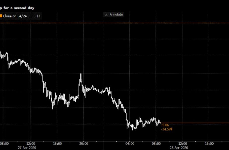 Olie blijft ongeliefd. De coronacrisis, ruzie tussen olielanden, maar vooral ook de (aanstaande) recessie blijven de olieprijs (WTI) drukken. Na de negatieve uitkomst voor de mei-futures daalt ook al enige tijd de prijs van de juni-futures. De vrees voor een herhaling van mei kruipt zo in de futures-koersen.