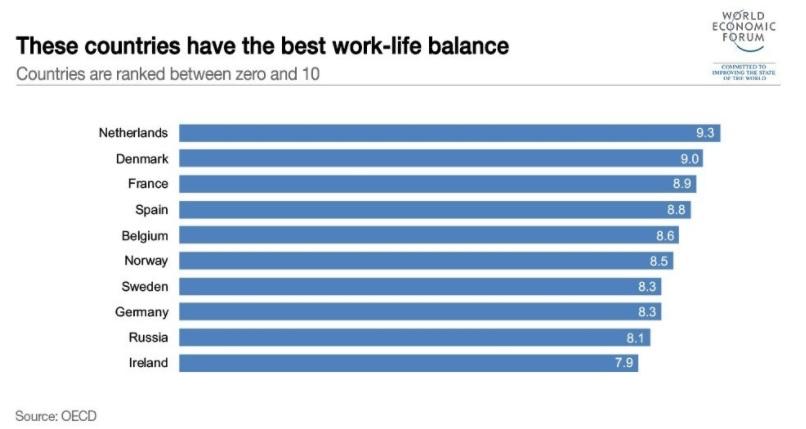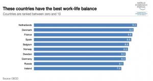 Buiten de olympische spelen scoort Nederland ook goud, met een eerste plaats in de ranglijst van landen wat betreft de balans tussen werk en privé.
