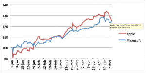 Volgens Goldman Sachs zijn bedrijven die tastbare producten fabriceren gevoeliger voor de handelsoorlog tussen China en de VS dan bedrijven die diensten verlenen. Producenten kunnen volgens Goldman geconfronteerd worden met onderdelen en grondstoffen die duurder kunnen zijn door heffingen. Ook op de eindproducten kan een importtarief gerekend worden. Dienstverleners hebben dit soort problemen veel minder. Volgens Goldman is Apple dus gevoeliger voor de handelsoorlog dan Microsoft. De laatste week was dit effect op de beurs in ieder geval te zien.