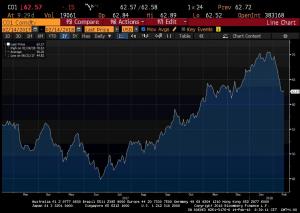 Zoals gezegd vertonen olieprijzen een daling en dalen oliegerelateerde aandelen hierop. Na de sterke opmars van de afgelopen maanden heeft Brent vanaf de top van $70,53 ruim 10% ingeleverd. Momenteel noteert een vat $62,57.