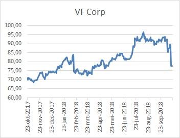 Een andere grote daler was uitblinker VF Corp. Het aandeel kelderde 10,7% na een winstwaarschuwing. De jongste kwartaalcijfers waren beter dan verwacht. Vooral de populaire Vans-sneakers lieten zeer sterke verkopen zien: omzet +26%. VF realiseert hoge marges met Vans. De totale omzet kwam 15% hoger uit op $3,91 mrd, tegen de consensus van $3,87 mrd. Teleurstellend was wel de gang van zaken bij de outdoor-divisie, met een omzetdaling van 2% voor Timberland en een lagere brutomarge.