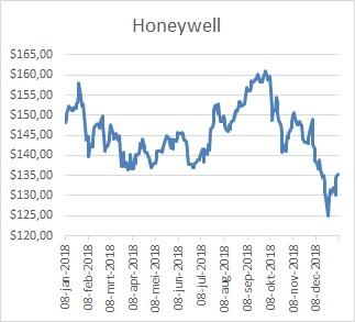 Dat geldt ook voor Honeywell International, dat ik op $130,15 kocht als vervanger van United Technologies. Het breed gespreide industriële bedrijf (dividendrendement 2,5%) dat ik in 2015 al eens tipte in het Dividend E-magazine, staat al lang op mijn watchlist en kon nu eindelijk weer tegen een mooie koers worden gekocht na een koersdaling van ruim $30 sinds begin oktober.