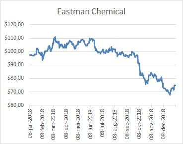 Het bij het grote publiek minder bekende Eastman, dat vorig jaar zo’n $40 inleverde, heeft een k/w van 9 en biedt een dividend van 3,3%. Eastman moet de komende jaren makkelijk in staat zijn het dividend met 8 tot 10% te verhogen, en past daarmee uitstekend in de Dividendportefeuille.