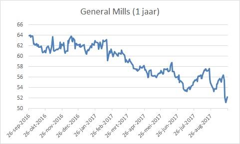 Voor de rest van het jaar voorspelt General Mills verbetering, waarbij de eerder afgegeven outlook voor 2018 werd herhaald. Deze gaat uit van een organische omzetgroei van 1-2%, een hogere operationele winstmarge en een licht hogere aangepaste wpa dan het afgelopen jaar ($3,08). De geschatte k/w van minder dan 17 weerspiegelt de magere vooruitzichten voor General Mills, dat van de meeste analisten momenteel een houdadvies krijgt. Ondanks de blijvend zwakke resultaten handhaaf ik het aandeel vooralsnog voor de dividendportefeuille. Ook bij een vlakke omzet de komende jaren moet General Mills gezien de sterke kasstroom in staat zijn om het dividend minimaal te handhaven. Bij een koers van $52,27 is het dividendrendement opgelopen tot 3,7%, wat hoog is voor een traditioneel defensief aandeel van het kaliber General Mills. Met herbeleggen wordt vanzelfsprekend automatisch geprofiteerd van de lage koersniveaus van dit moment, waardoor het uiteindelijke totaalrendement bij eventueel koersherstel natuurlijk veel hoger zal uitvallen. Ondanks de zwakke performance (YTD -15%) is General Mills in de dividendportefeuille nog altijd goed voor een totaalrendement van 56,2% sinds de aankoop op 8 februari 2012.