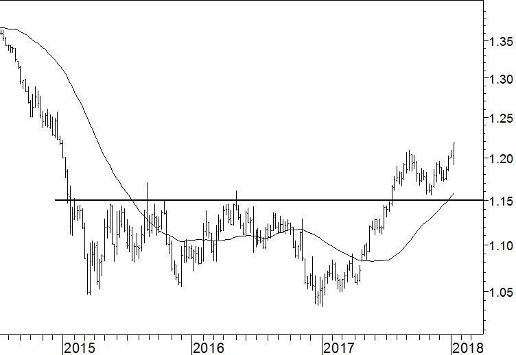Meerdere keren hebben wij aangegeven dat de wisselkoers tussen de euro en de Amerikaanse dollar een klassiek bodempatroon heeft gevormd tussen 2015 en medio 2017.