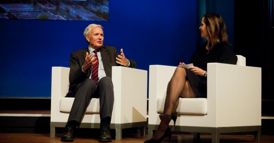 In de Theaterzaal vond aan het einde van de dag een interview plaats van Annemarie van Gaal met voormalig D66-leider Jan Terlouw. Sinds die bij De Wereld Draait Door het ‘touwtje uit de brievenbus’ muntte als metafoor voor het onderling vertrouwen in de samenleving, is er veel over hem heen gekomen. In gesprek met Van Gaal onderstreepte hij nogmaals het belang van vertrouwen hebben in elkaar. ‘Mensen sloegen daar echt op aan, op die samenleving waar alles met contracten moet in plaats van met een handdruk. Maar andere mensen zeiden achteraf tegen me: wat naïef. Mijn antwoord daarop was: wie denkt er nu dat je met wantrouwen iets tot stand brengt?’
