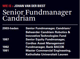 We spraken met Johan Van Der Biest – beheerder van het Candriam Robotics & Innovative Technology Fund dat zich sinds kort specifiek op robotgerelateerde aandelen richt – onder meer over de vraag of beleggers hoogtevrees moeten krijgen, of dat er rondom het robot-thema nog mooie investeringskansen te vinden zijn.