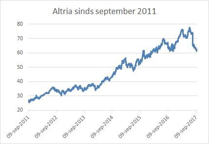 Ook Dividend Aristocrat Altria blijft beleggers vooralsnog belonen met fraaie dividendverhogingen. Dit jaar keert de producent van Marlboro sigaretten 8% meer dividend uit. Het kwartaaldividend wordt verhoogd naar $0,66, wat bij een koers van $61,22 een dividendrendement van 4,3% geeft. Op de beurs zit Altria door de aanhoudende anti-rokerslobby in een serieuze dip. Het aandeel zakte na een hoogste koers ooit, $77,79 in eind juni, terug tot een laagste jaarkoers van $60 op het nieuws dat de Amerikaanse toezichthouders aanstuurt op nog strengere regels om het roken verder te ontmoedigen. Precies om deze reden werd Altria in december 2015 uit voorzorg verkocht voor de dividendportefeuille op een toenmalige koers van $58,36, die overigens nog altijd lager is dan het huidige koersniveau van $61. De opbrengst van de verkoop van Altria werd echter via tussenstation Kroger uiteindelijk belegd in CoreSite Realty, waarmee tot dusverre een winst van 32% werd gerealiseerd voor de dividendportefeuille.