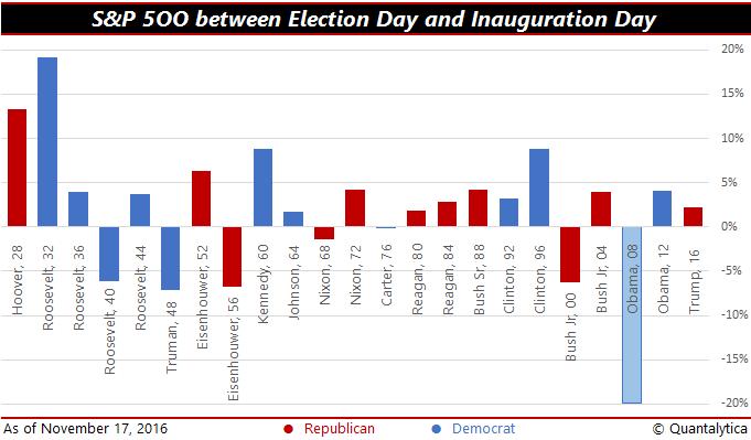 En beleggers mogen dan wel onaangenaam verrast zijn met de uitslag van de presidentsverkiezingen, in 2008 zorgde de kennismaking met Barack Obama als president-elect voor grote averij op Wall Street.