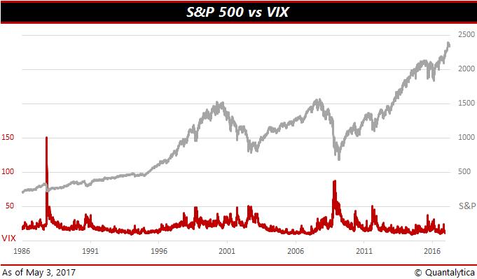 Stoorzenders die roet in het eten kunnen gooien, zijn economische tegenvallers en geopolitieke spanningen. Het ideale scenario voor de beurs is aantrekkende groei bij gematigde inflatie zonder al te hoge rente of volatiliteit. Als de onzekerheid of het beleggingsrisico toeneemt, dan uit zich dat in een stijging van de VIX. De volatiliteitsindex noteert momenteel erg laag en om hieruit te concluderen dat beleggers genoegzaam zijn, gaat te ver. De volatiliteit van individuele aandelen is de afgelopen jaren niet structureel veranderd. Een extreme lage stand van de VIX is echter ook een teken dat er veel meer kopers zijn dan verkopers. Het klopt wel dat in een nerveuze markt extreme uitslagen van de VIX samenvallen met dieptepunten op de beurs. Maar bullmarkten eindigen niet met een grote knal. Dat neemt niet weg dat het einde van langdurige stijgingen vaak door grotere koersuitslagen worden voorafgegaan.