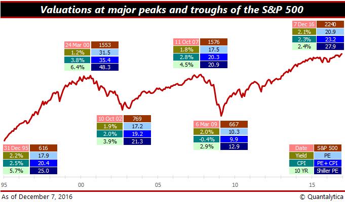 Is er dan geen stoorzender of iets dat zorgen baart? Jawel, aandelen zijn verre van goedkoop. Daar staat echter tegenover dat de rente nog steeds historisch laag te noemen is. En als u naar de verschillende waarderingsmaatstaven kijkt, dan valt het eigenlijk nogal mee. Enkel de Shiller PE, het voor inflatie gecorrigeerde tienjaars gemiddelde, valt uit de toon. Maar kijkend naar de bodems van december 1995 of oktober 2002 is ook de Shiller PE geen kompas waar men blind kan op varen. Och ja, als er geen zorgen waren, dan zouden aandelen niet kunnen stijgen. Aandelenmarkten beklimmen eenmaal een muur van zorgen.