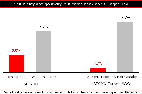 Een blik op het seizoenpatroon van de Europese en Amerikaanse aandelenbeurzen leert dat aandelen in de winter beter renderen dan in de zomer. De interpretatie van zomermaanden en winterperiode wordt in beleggerskringen evenwel ruim gemeten. Het loopt van mei tot en met oktober respectievelijk van november tot en met april.