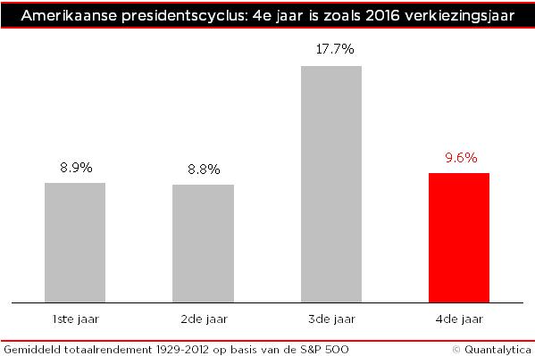 Vergeet niet dat in de Verenigde Staten de presidentsverkiezingen eraan komen. Al zijn ze niet zo mooi als het derde jaar van de presidentscyclus, in de regel zijn jaren waarin Amerika een nieuwe president kiest voor Wall Street goede jaren.