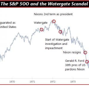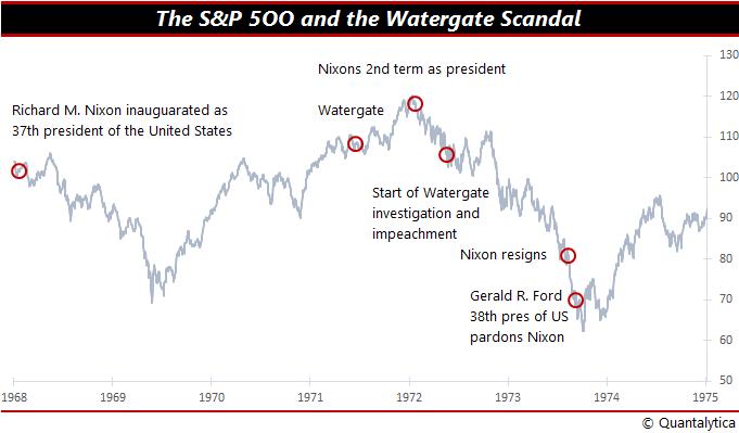 Hoewel Donald Trump het zich wellicht anders had voorgesteld, momenteel hebben we een politieke beurs, waar de machtsspelletjes van de kersverse president van de Verenigde Staten steeds vaker de toon op de Amerikaanse aandelenbeurzen bepaalt. Als de analogie aanhoudt met Richard Nixon – de Republikein die in de zomer van 1974 omwille van het Watergate-schandaal alsnog besloot om vrijwillig af te treden als president – dan wacht beleggers op Wall Street een emotionele daling van 50%. Maar zo ver is het nog niet. Donald Trump mag dan wel rare dingen doen, momenteel loopt er geen onderzoek naar strafbare feiten die hij tijdens zijn presidentschap heeft of zou hebben begaan.