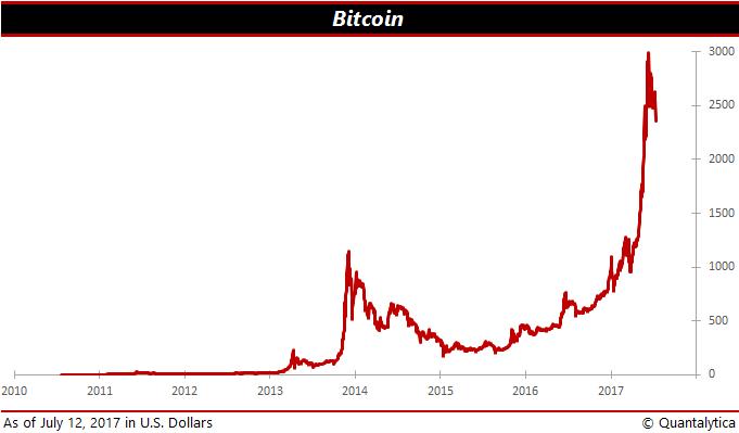 Bitcoin mag dan wel de onbetwiste marktleider zijn, zolang de munt niet wordt omarmd door financiële instellingen, bestaat er een kans dat de digitale munt van het toneel zal verdwijnen. Bovendien wordt het marktaandeel van de bitcoin almaar kleiner. Begin dit jaar was dat nog een 90%, nu is dat minder dan de helft. Niettemin noteert de koers van Bitcoin in 2017 bijna 150% hoger dan bij de jaarwisseling.