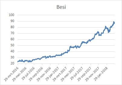 In lijn met de resultaten groeide ook het dividend de laatste jaren explosief (+2000% sinds 2013). Dit jaar keert het bedrijf een recorddividend uit van €4,64 per aandeel. Ter illustratie: Vijf jaar geleden, in 2013, kon u een aandeel Besi nog kopen voor een koers van €6,50. Bij de huidige koers van €88 biedt dit voor Nederlandse begrippen unieke aandeel ondanks een enorme koerssprong nog steeds een fraai rendement van 5,4%.