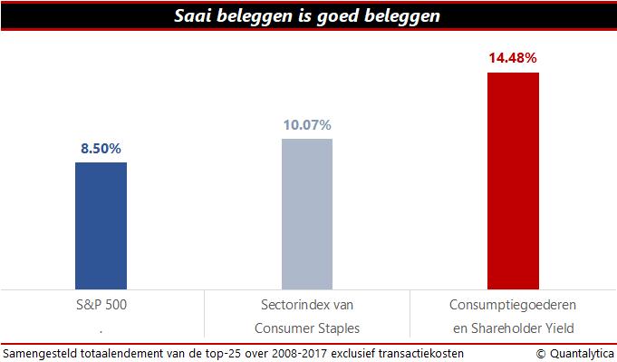 Voor de goede orde, de getoonde rendementen zijn gebaseerd op historische simulaties conform de indexsamenstelling van de S&P 1500. Hierbij werd uitgegaan van een jaarlijkse herbelegging in de 25 fondsen die bij de jaarwisseling het hoogste aandeelhoudersrendement realiseerden. Het empirisch onderzoek houdt net als in het boek What Works on Wall Street geen rekening met fricties, zoals transactiekosten, dividendbelastingen, et cetera. En tot slot, maar daarom niet minder belangrijk: er bestaat een wezenlijk verschil tussen een hip aandeel en een goed aandeel. Een hip aandeel is nu onder beleggers populair. Een goed aandeel is vaak saai, maar het is er een die het in de toekomst beter zal doen dan zijn sectorgenoten.