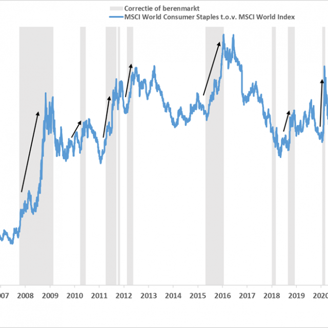 Figuur 3: Aandelen van basisconsumptiegoederen doen het goed tijdens marktdalingen