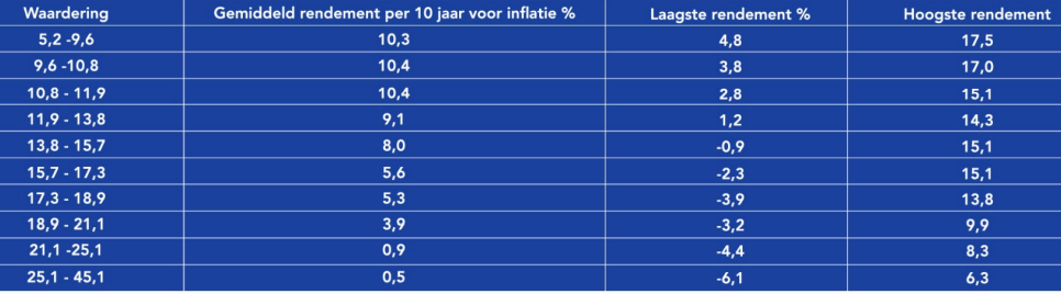 Amerikaanse aandelenrendementen die volgen bij een bepaalde waardering: