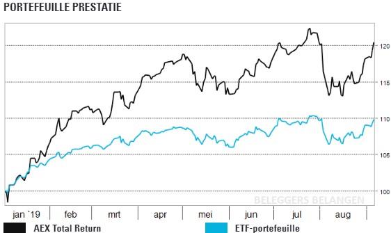 Het jaarrendement van de ETF-portefeuille is de afgelopen week iets toegenomen en staat nu op +9,8%. Het totaalrendement staat op +44,5%.