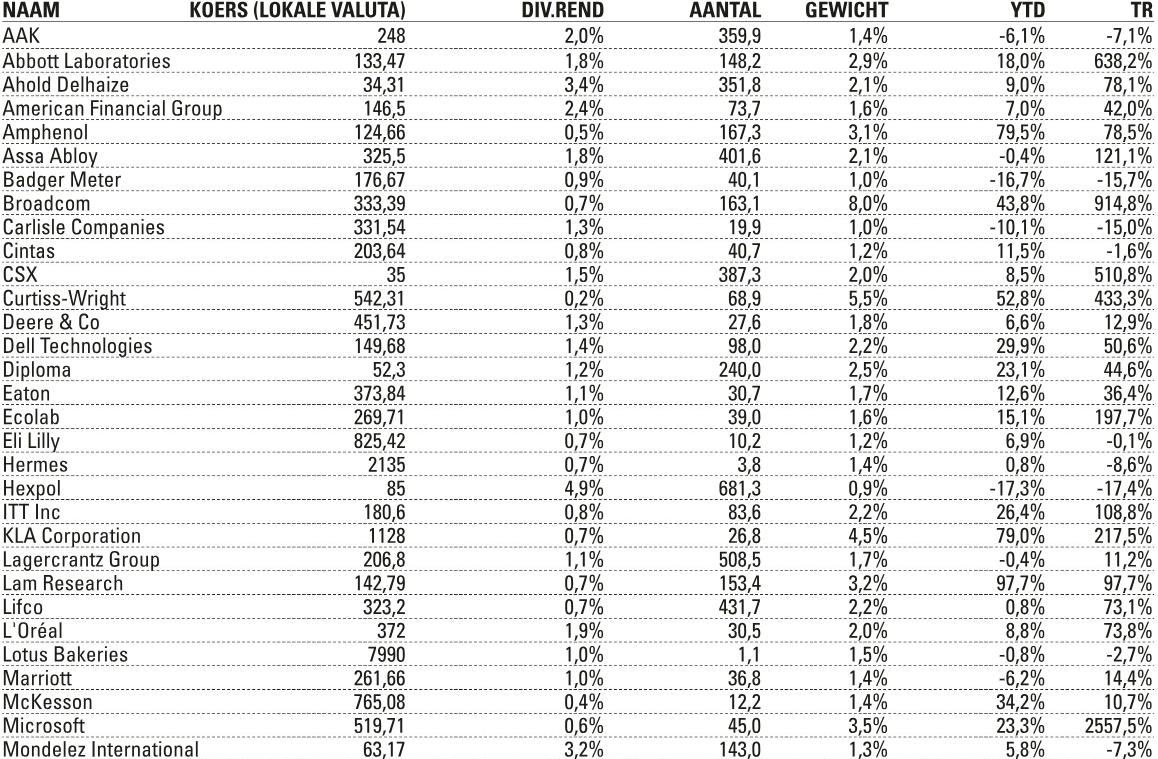 De Dividendportefeuille bereikte een nieuw record dankzij stijgers zoals Thermo Fisher, Dell, Lam Research, Eli Lilly, Valmont Industries en Curtiss-Wright. Het dividend uit het derde kwartaal is herbelegd.