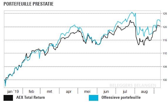 De Offensieve portefeuille profiteerde mee van de beursrally van de afgelopen maand. Die rally is echter gebaseerd op het gegeven dat het handelsconflict tussen China en de VS, de brexit en het recessiegevaar zich niet in ongunstige richting hebben ontwikkeld. Het optimisme is dus waarschijnlijk tijdelijk van aard.