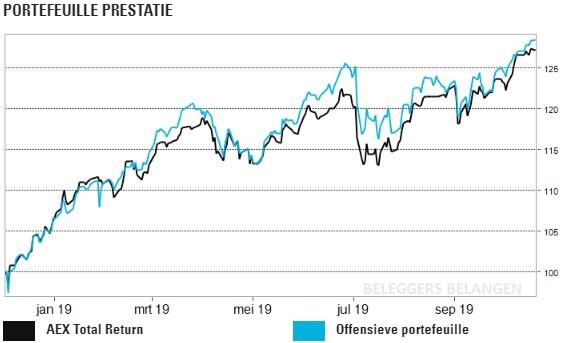 Het rendement over 2019 van het aandelendeel van de Offensieve portefeuille steeg de afgelopen week van 32,1 naar 33,3%. Toch waren er onder de 31 aandelen nog negen dalers, zoals de twee Amerikaanse spoorwegvervoerders CSX en Union Pacific, die beschuldigd worden van kartelgedrag rond brandstofprijzen.