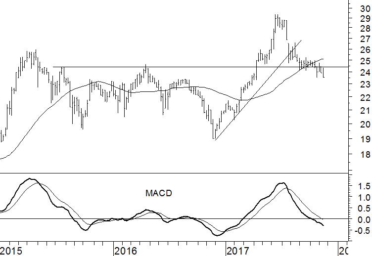 Acomo leefde al enkele maanden tussen hoop en vrees. De laatste strohalm was het steunniveau rond €24,50, dat had moeten zorgen voor nieuwe koopinteresse. Nu is ook deze hoop vervlogen. Minder positieve aspecten van het technische beeld blijken nu toch de overhand te krijgen. Zo is het aandeel inmiddels diep weggezakt onder het 40-weeks gemiddelde en bevindt de MACD-indicator zich onder de nullijn. Allemaal voortekenen voor de nodige koersdruk in de komende weken tot maanden.