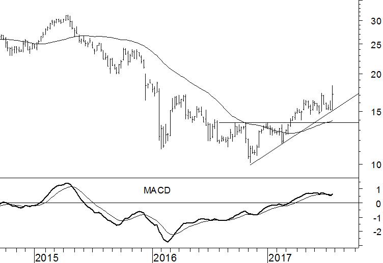 Maar de stijgende trend heeft nog niet z’n volle potentie benut. In de komende maanden is er alle kans dat Arcadis nog hogere niveaus laat zien. Een volgend koersdoel plaatsen wij op €20, het niveau van het koersvacuüm (gap) van december 2015. Pas wanneer de trendlijn rond €15 in neerwaartse richting wordt gebroken, komt het positieve scenario in gevaar. Voorlopig zien wij dat niet gebeuren en daarom zeggen wij ook nu weer: ‘kopen’.