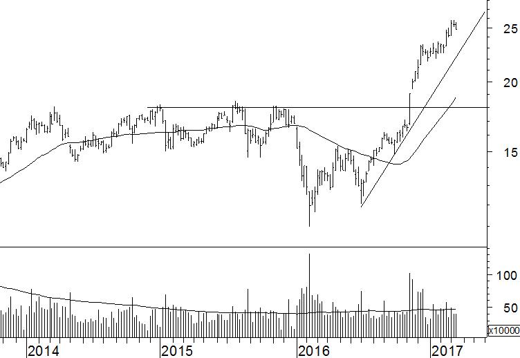 De vraag is of de winst verzilverd kan worden. Het exclusieve karakter van de stijgende trend van de laatste maanden – zonder enige vorm van correctie – maakt het aandeel kwetsbaar. Tegelijkertijd laat de stijgende trend nog geen teken van vermoeidheid zien. Winst nemen is dan ook ongepast omdat er meer in het vat zit. Beleggers zonder positie kunnen wachten op een eventuele correctie om alsnog in te stappen. Kortom: het koopadvies blijft gehandhaafd.