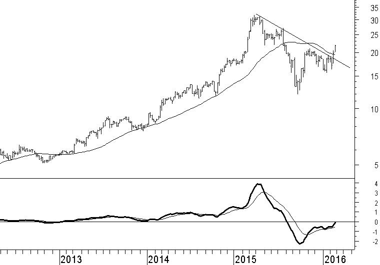 Besi is enkele weken geleden nog door ons besproken. De kwetsbaarheid van het technische beeld bleek toen uit de druk die uitgeoefend werd door de weerstand rond €19 en de positie van het aandeel onder het 40-weeks gemiddelde. Ons ongelijk in deze is inmiddels aangetoond met een krachtige beweging boven het €19-niveau. Ook beweegt de beurskoers van Besi weer boven de gemiddeldelijn. Dat maakt dat niet alleen het technische beeld is verbeterd maar ook dat een nieuwe stijgende trend van start is gegaan. Het nieuw gevonden opwaartse momentum wordt ondersteund door een positieve kruising met de nullijn van de MACD-indicator. Tussentijdse correcties horen erbij en zijn goede kansen om op lagere niveaus in te stappen. Maar of het überhaupt tot een correctie komt valt met de kracht van het huidige technische beeld te bezien.
