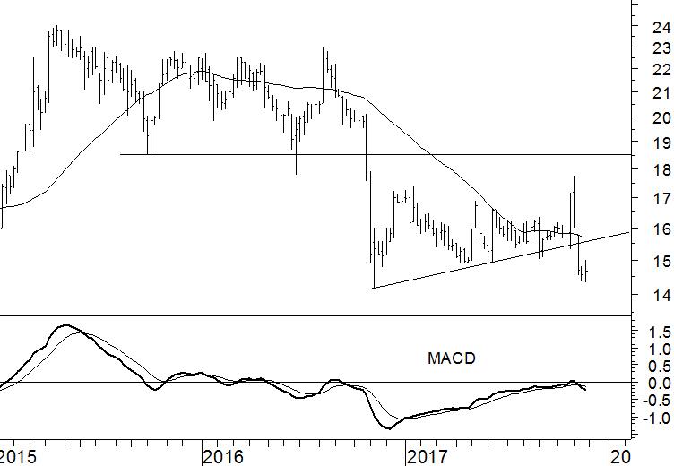Beter Bed leek eind oktober te ontsnappen aan de negatieve spiraal waarin het aandeel al lange tijd gevangen zat. Met een krachtige opmars doorbrak het de dalende trend. In een mum van tijd is de koopinteresse echter als sneeuw voor de zon verdwenen. Het aandeel noteert inmiddels weer onder het 40-weeks gemiddelde. Daarmee opent zich een neerwaarts potentieel tot €12,75, het dieptepunt van de jaren 2011 en 2013.