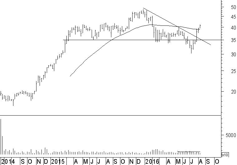 Euronext laat een verrassende draai omhoog zien in het technische beeld. Begin juli viel het aandeel juist onder het steunniveau rond €35 en zette het een dalende trend in. Onze verwachting was een verdere voortzetting van deze trend met lagere koersen als gevolg. Zover is het niet gekomen. Met een snelle beweging is het aandeel nu terug boven het €35-niveau en zelfs boven het 40-weeks gemiddelde. Daarmee is het risico op een snelle koersdaling geweken. In de komende weken rekenen wij dan ook op een meer zijwaarts tot hoger koersverloop. Rond €48,50 ligt een belangrijke weerstand in de vorm van de oude koerstop van 2015 en voorlopig is dat het maximaal haalbare. Van een nieuwe stijgende trend is nog geen sprake; daarvoor zal eerst een stabiel patroon van hogere toppen en bodems moeten ontstaan. Wel is de verbetering van het technische beeld sterk genoeg voor een verhoging van het advies naar ‘houden’.