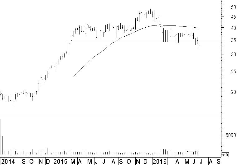 Euronext zakt door het ijs. In de laatste weken wordt duidelijk dat het steunniveau rond €35 is bezweken onder de toegenomen verkoopdruk. Dat is een trendbreuk met de tendens vanaf 2015 dat beleggers telkens instapten bij een dip naar het €35-niveau. Niet alleen is het steunniveau doorbroken, maar ook is een nieuw patroon van lagere toppen en bodems gestart. En dat is de definitie van een dalende trend. Verontrustend is verder dat ook het 40-weeks gemiddelde een neerwaarts verloop heeft. In de komende weken tot maanden verwachten wij lagere koersen voor Euronext waarbij we het koersdoel plaatsen op €25. Beleggers van het eerste uur zitten nog steeds op winst na de emissie van twee jaar geleden. Voor deze beleggers is het verstandig om nu afscheid te nemen van hun aandelenbezit Euronext, om zo de papieren winst om te zetten in tastbare euro’s. Met dit negatieve scenario is er geen alternatief voor een adviesverlaging naar ‘verkopen’.