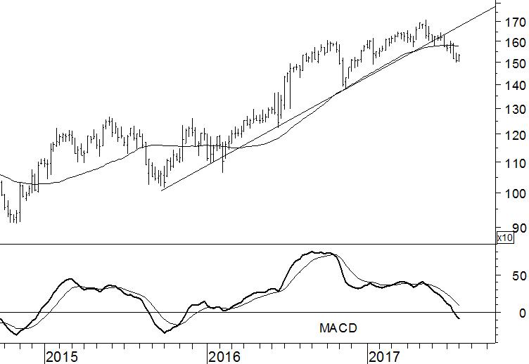 Experian heeft meer dan een jaar een patroon gekend van hogere toppen en bodems. Beleggers hebben goed kunnen profiteren van deze stijgende trend, maar het moment is gekomen om winst te nemen. Structureel hogere koersen zijn in de komende maanden niet te verwachten. Dat is duidelijk vanwege de val onder zowel het 40-weeks gemiddelde als de stijgende steunlijn. Beide boden rond 1600p een onderliggend vangnet voor overtollige verkoopdruk.