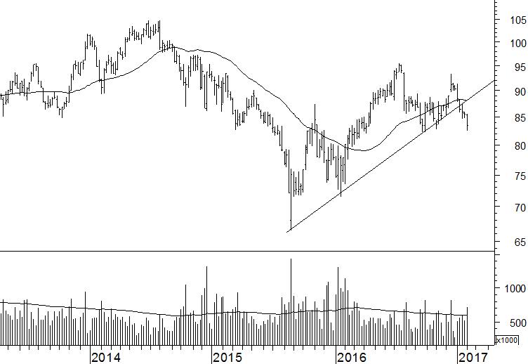 Met onmiddellijke ingang verlagen wij het advies naar ‘houden’. Mocht het steunniveau rond $82 sneuvelen dan aarzelen wij niet om een verdere adviesverlaging door te voeren.