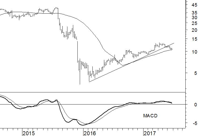 Fagron is al ruim een jaar bezig om uit het diepe dal te klimmen waar het in de tweede helft van 2015 in is gestort. De bestendige stijgende trend heeft het op dit moment echter zwaar. Enkele weken terug viel de beurskoers onder de oplopende steunlijn, en dat was een eerste teken van zwakte. Op dit moment vindt een test plaats van het 40-weeks gemiddelde, dat momenteel beweegt rond €10. Mocht ook dit niveau sneuvelen dan verliest Fagron het perspectief op structureel hogere koersen.