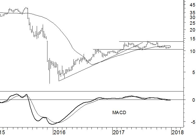 Fagron heeft vanaf medio 2016 een fraaie stijgende trend laten zien. Lang hebben wij deze trend het voordeel van de twijfel gegeven. Maar nu stapelen de bewijzen zich op dat het koersverloop van Fagron overgaat in een zijwaarts patroon. Beleggers verliezen interesse.Een belangrijke aanwijzing daarvoor is dat het aandeel nu al maandenlang onder het 40-weeks gemiddelde beweegt. Daarbij kent deze gemiddeldelijn inmiddels een horizontaal verloop. Als laatste bewijsstuk voeren wij aan dat de MACD-indicator onder de nullijn is weggezakt. Niets wijst meer op enig opwaarts momentum en de koopinteresse van beleggers is duidelijk weggezakt.