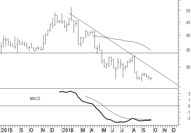 De dalende trend houdt nog steeds aan, al neemt het momentum wel af. Dat wijst mogelijk op een stabieler koersverloop in de komende maanden. Om echt te ontsnappen aan de dalende trend is het nodig dat de weerstandslijn rond €29 overtuigend wordt doorbroken. En dan nog noteert Flow Traders aan de onderkant van een dalend 40-weeks gemiddelde.
