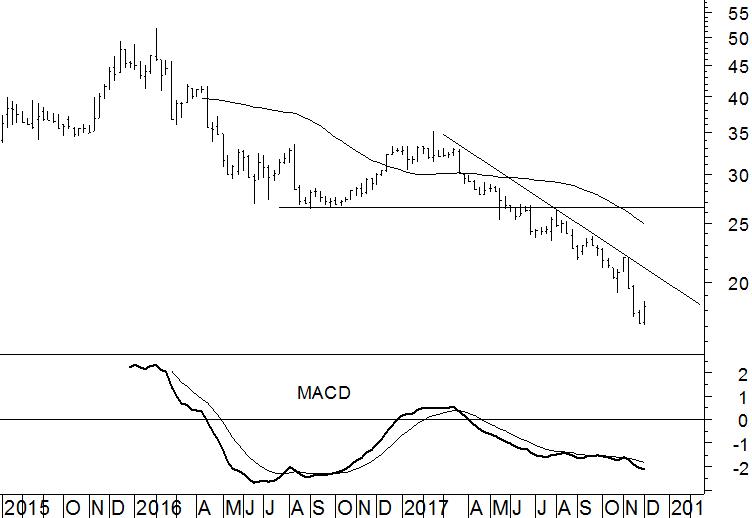 Flow Traders bevindt zich al sinds mei dit jaar in een neerwaartse spiraal. Vooral de val onder €26,50 heeft het technische beeld aangetast. Inmiddels noteert Flow Traders een flink stuk onder het destijds door ons geformuleerde koersdoel van €20. Voorlopig blijft het technische beeld negatief. De trend in de weekgrafiek blijft onmiskenbaar omlaag gericht en niets duidt erop dat dit spoedig zal veranderen. Het 40-weeks gemiddelde wijst in zuidelijke richting en ook de MACD-indicator is negatief gekruist.