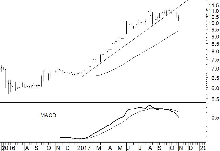 ForFarmers heeft na de introductie in mei 2016 een klein jaar nodig gehad om te acclimatiseren op de beurs. Sinds februari dit jaar weten beleggers het aandeel te vinden en staat het op de kooplijst van de technische analyse. Daarin zal voorlopig geen verandering komen, ondanks de val van het aandeel onder de oplopende steunlijn. Hierdoor is weliswaar het hoge stijgingstempo gebroken; het patroon van hogere toppen en bodems blijft overeind. Ook het oplopende karakter van het 40-weeks gemiddelde geeft aan dat de grote trend nog steeds omhoog wijst.