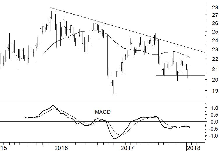 GrandVision ziet het technische beeld snel verslechteren. Maandenlang weerhield het steunniveau rond €20,50 het aandeel van een verdere koersdaling. Dat dit niveau uiteindelijk moest wijken is niet verrassend. Immers, de belangrijkste koerstoppen liggen al meer dan een jaar op een lager niveau en het 40-weeks gemiddelde beweegt in neerwaartse richting. De koersdruk was niet te houden.